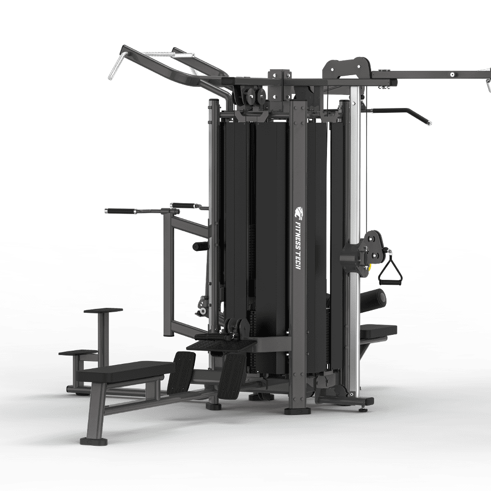 La multiestación de 5 puestos de la línea Pro Series de Fitness Tech está diseñada para ofrecer un entrenamiento completo, versátil y simultáneo en entornos profesionales de alto rendimiento. Gracias a su configuración avanzada con múltiples estaciones y sistema de poleas, permite trabajar todo el cuerpo en una única estructura, optimizando el espacio sin renunciar a la calidad del entrenamiento.