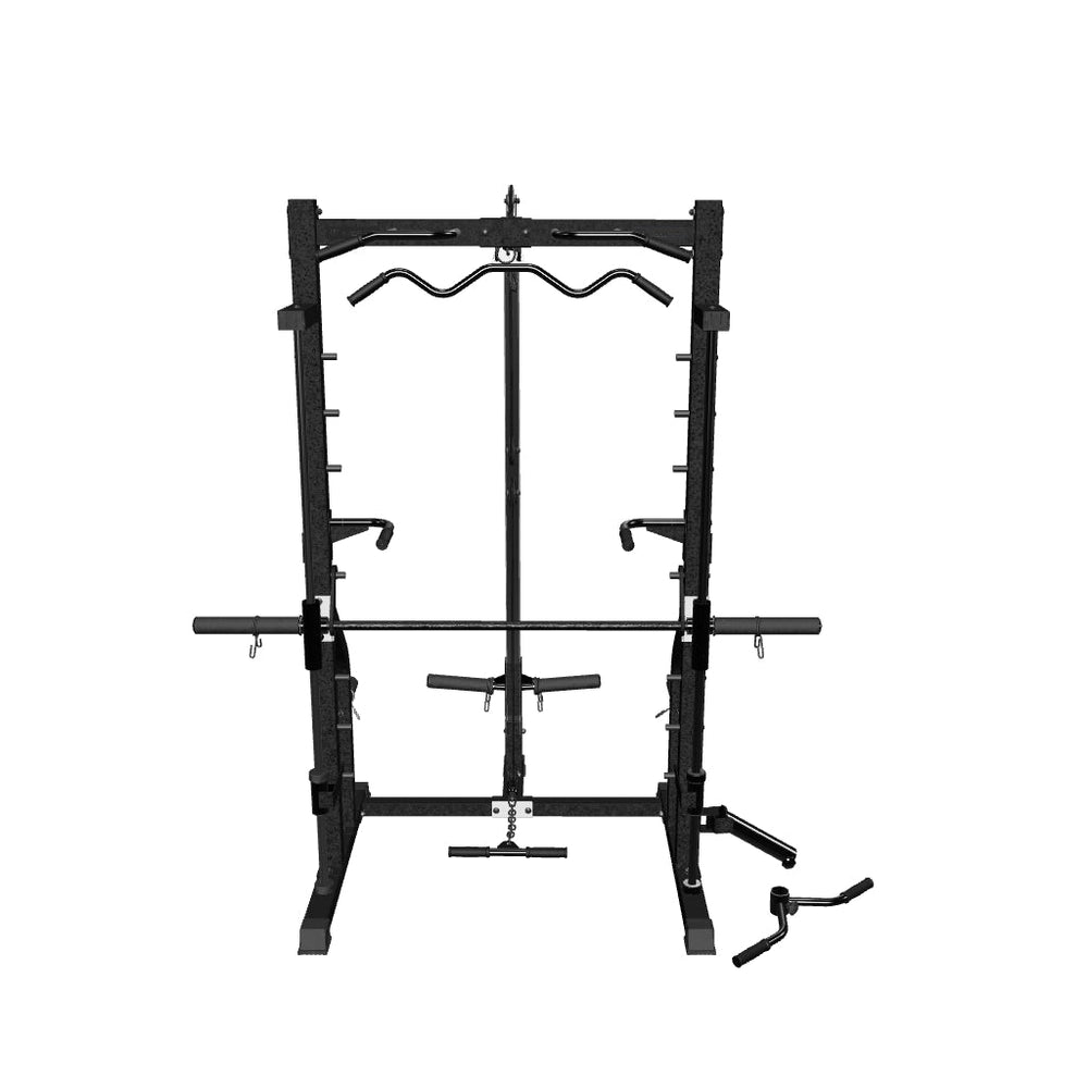 The Smith Machine S13 is a multifunction machine designed to turn your home into a true strength training space. Its robust frame allows exercises such as squats, bench press, weightlifting, pull-ups, pulley work, and exercises for abs, legs, back, and arms, all in a single compact unit.